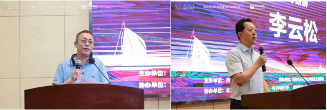 的“奥波勒斯小队”、航天工程大学的“冰淇淋”以及山东师范大学的“开路一队”4支队伍脱颖而出,荣获赛道一一等奖;中国人民解放军海军工程大学的“杉羽队”、湖南大学的“啊对对”、山东科技大学的“重明队”、北京信息科技大学的“全力划水”等 11 支团队斩获赛道二一等奖,他们凭借扎实的专业知识、卓越的创新思维和出色的团队协作,赢得了专家的高度认可。本次大赛特别设立“优秀指导教师奖”,表彰在项目指导中倾注心血的教师代表。隆克平教授和李云松教授为优秀指导教师代表颁奖,并感谢教师们对学生科创实践的支持。