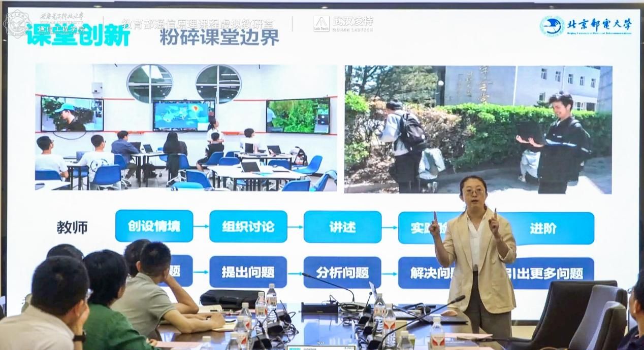 北京邮电大学教务处副处长刘奕彤教授以《理论与实践深度融合的通信原理教学探索》为题作专题报告,主要介绍了北邮通信原理课程群在理论与实践教学改革上的探索和成果,详细介绍了采用软件无线电设备后的理论实际一体化教学、在真实场景中的教学,AI辅助的个性化学习,以及和其他高校同上一堂课的情况,学生的自主学习能力和自主实践能力显著提升。