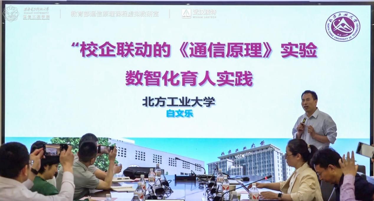 随后,北方工业大学信息学院实验中心主任白文乐教授以《校企联动的通信原理实验数智育人实践》为题,分享了校企协同育人的创新路径,报告以落实落地教育部“以数字教育改变学生的学,以数字赋能改变教师的教”实现数智赋能实验实践创新工程人才培养为驱动,从“学生书写实验报告多与有效学习时间少、实验报告抄袭与教师准确评价难、专业培养达成度与持续改进多课关联复杂”等痛点问题入手,分享校企如何将学生通信原理实验行为与实验过程数据的进行数智化关联,实现学生实验能力数字分项化,实验持续改进智能推荐精准化,共研共建通信原理课程数智化实验系统,开展从单课程到多课程“数据关联、能力关联、评价关联”的实验数智化实验体系建设支撑国家一流专业建设的具体做法。