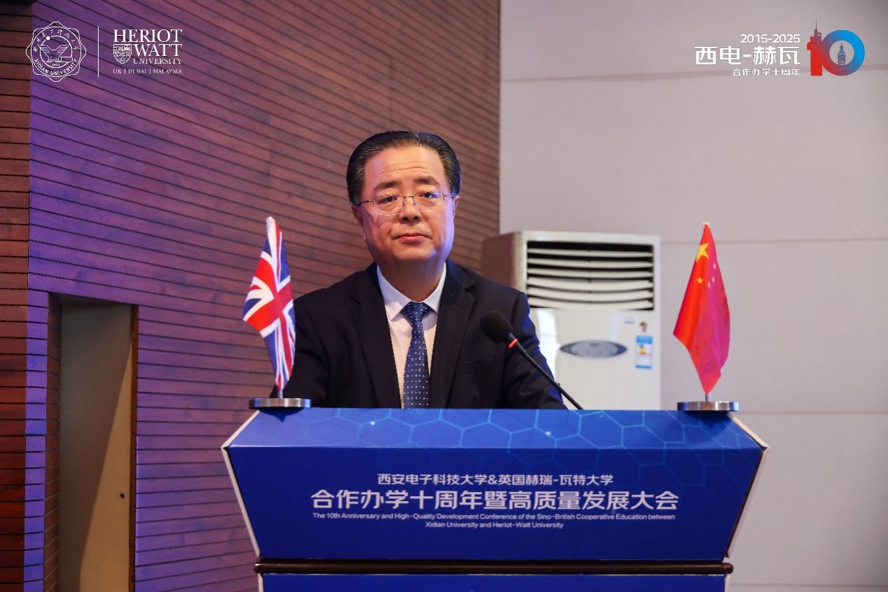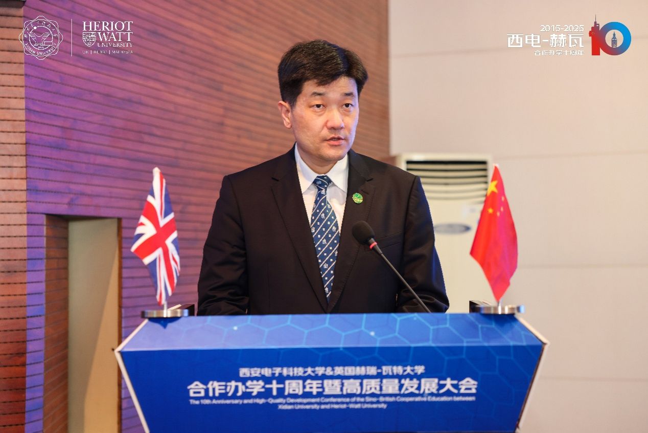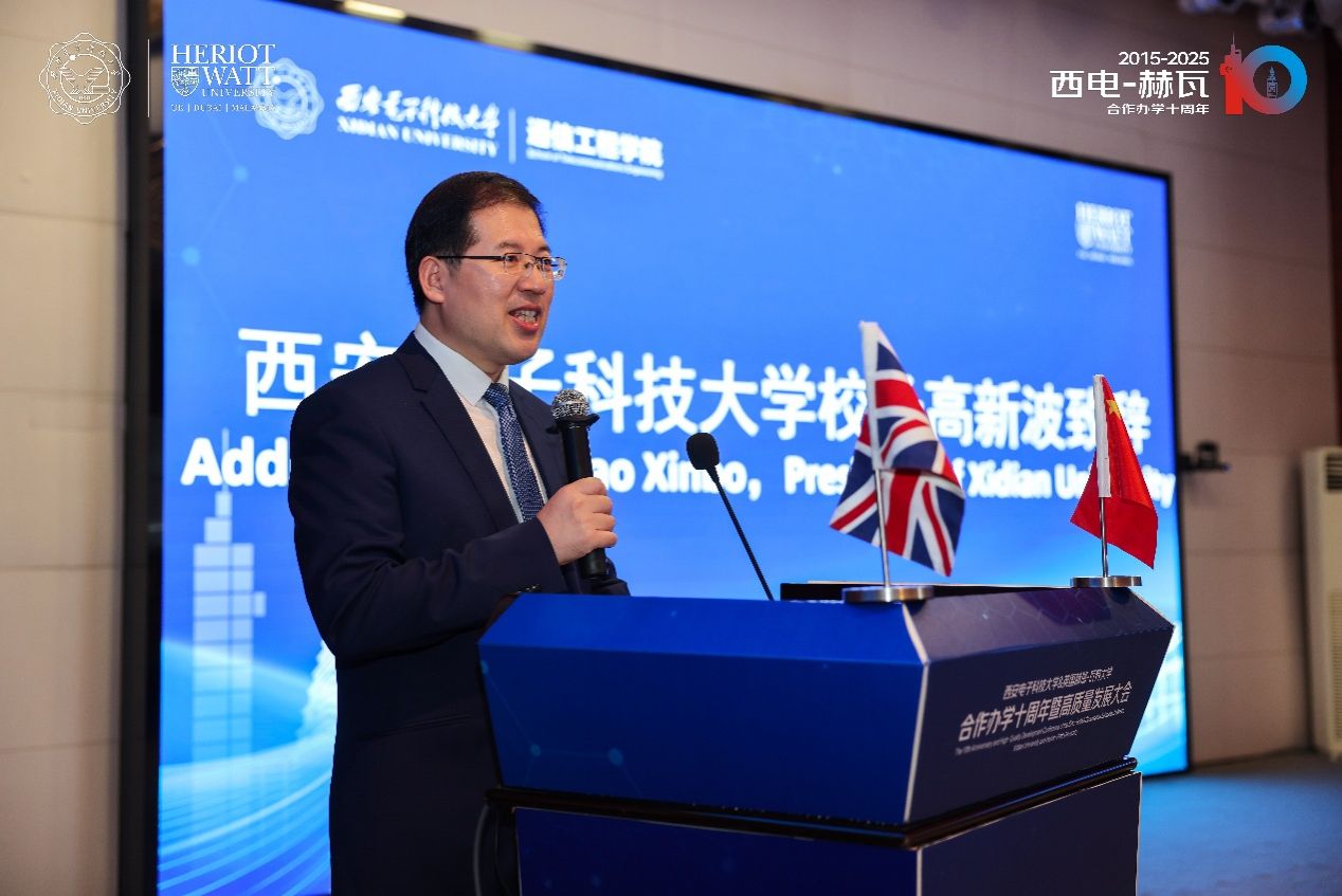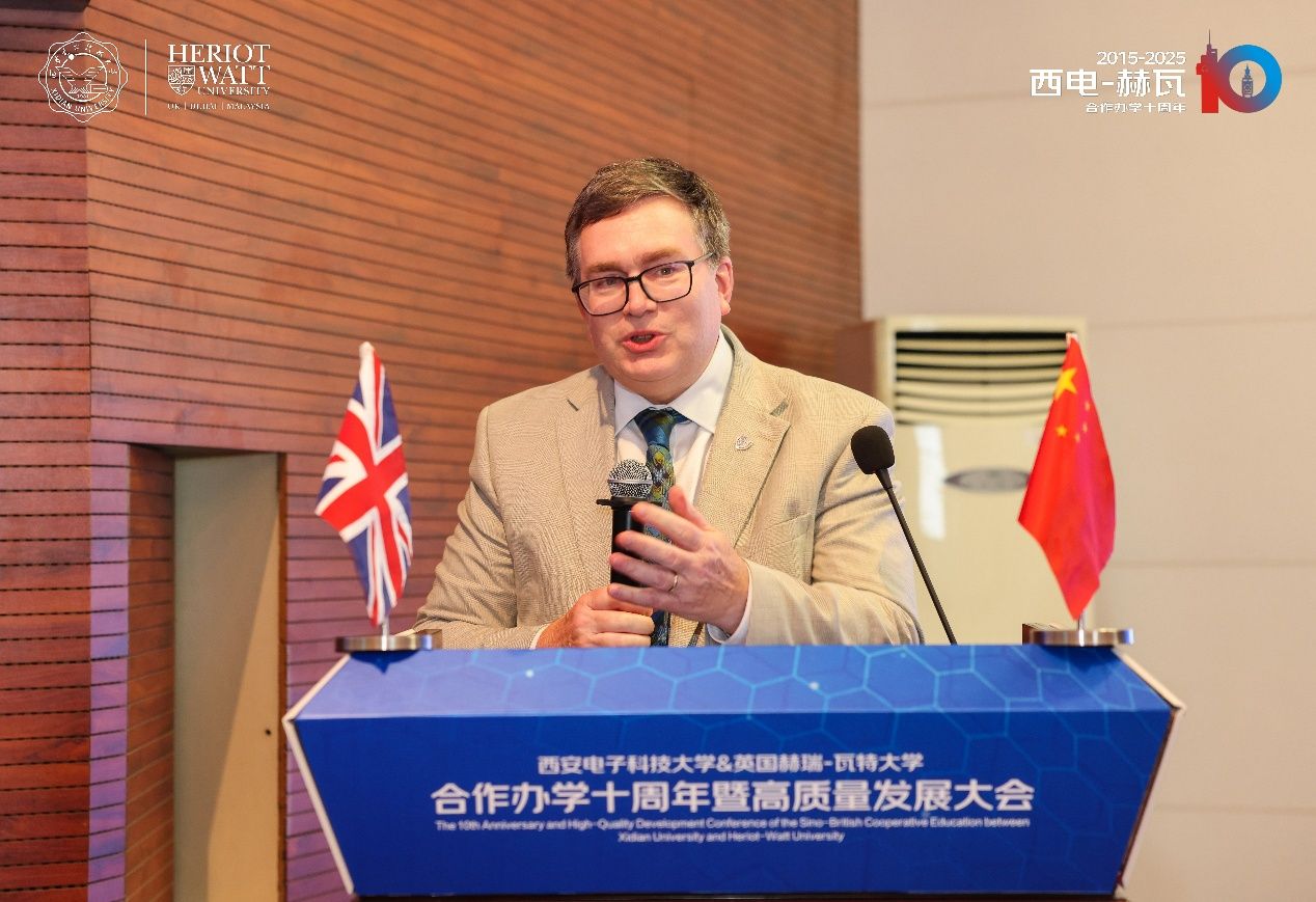 高新波在致辞中表示,中英合作办学项目不仅是两校国际化创新人才培养模式的重要探索,也是中西文化交融互鉴的生动实践。学校将继续深化合作,以中英合作项目为桥梁,携手赫瑞-瓦特大学积极融入“一带一路”科技创新合作体系,协同打造教育国际合作新生态,助力更多西电学子立足世界舞台,传播中国声音、贡献中国智慧。