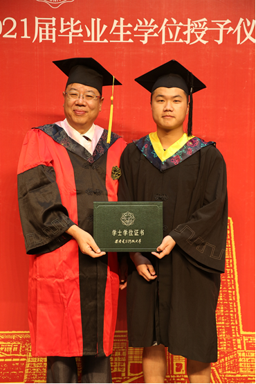 2021届本科毕业生共同见证了这一难忘时刻。授位仪式由学院党委副书记沈强主持,在国歌声中拉开帷幕。