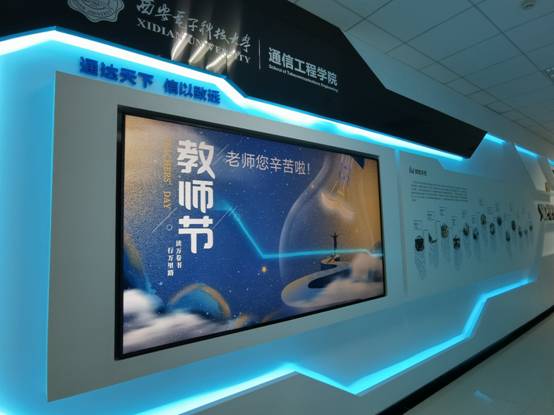 教师节期间,通院在学院办公文化区点亮专门设计的电子宣传栏,显示“老师,您辛苦啦”,为第37个教师节营造氛围。