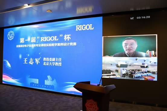 副校长王泉教授,电子信息类专业教指委副主任、北京大学王志军教授,示范中心联席会电子学科组组长、东南大学胡仁杰教授,普源精电科技股份有限公司运营副总裁朱峰先生分别线下和线上致辞,在颁奖结束后,由获得RIGOL杯的北京邮电大学尹良老师分享了获奖经验,由评审专家代表北京交通大学侯建军教授分享了案例设计方法,最后由评审委员会常务副主任陈彦辉教授对本届竞赛进行了总结。
