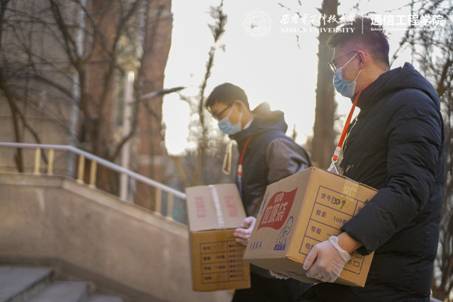辅导员积极组织号召党员先锋志愿者走访各宿舍,为同学们分发物资,讲解学校防疫政策,调研学生生活状况。党员先锋岗的同学们在学院领导和辅导员老师的指导下,恪尽职守,时刻坚守在抗疫一线。搬运抗疫物资、清理楼内卫生、布置通院防疫工作台、检查口罩佩戴情况、管控人员出入……处处都有他们的身影。