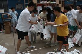学院党委副书记沈强慰问发放打包纸箱的学生志愿者