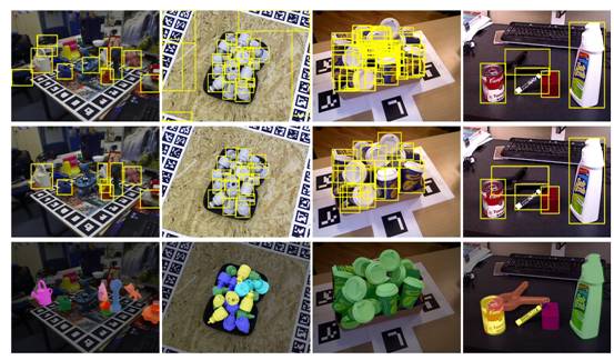 获奖方法采用检测-估计-修正的处理框架。团队针对初始位姿中对称物体存在的姿态歧义性进行了算法改进,性能了提升接近20%。其次,方法进一步改进了位姿优化流程,加入了双向光流、在线渲染、深度信息优化等组件。另外,获奖方法还采用了迭代修正的思路,以实现速度与精度之间的平衡。相比于其他队伍采用的方案,获奖方法仅需使用RGB进行训练,即可在测试时同时处理RGB和RGB-D数据,可扩展性强。最终在单模型赛道,无论是使用RGB还是RGB-D,均大幅领先其他队伍。