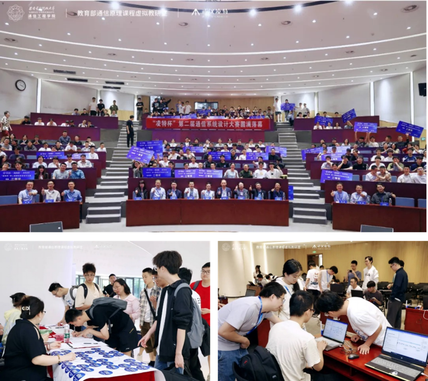 副院长顾华玺教授,西安交通大学电子与信息学部副主任罗新民教授,西北工业大学电子信息学院副院长姚如贵教授,东南大学通信技术研究院常务副院长宋铁成教授,北方工业大学信息学院电信实验中心主任白文乐教授,教育部通信原理课程虚拟教研室负责人任光亮教授,武汉凌特电子技术有限公司董事长沈瑞华先生,大赛评委及参赛师生们出席了本次颁奖典礼。