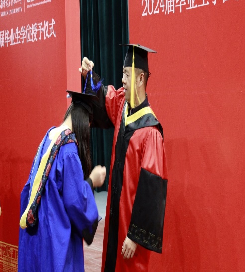 2024届研究生学位授予决定。教师代表李娇娇深情致辞:“同学们经过数载的勤奋学习,今日终于迎来了收获的时刻。我代表所有导师,向大家表示最热烈的祝贺!愿大家继续怀揣梦想,书写更加辉煌的未来。”毕业生代表石贝同学代表所有毕业生表达了对母校的深深感激。他回顾了研究生阶段的学术探索与成长历程,对导师的悉心指导以及同学们的并肩作战表达了由衷的感谢。