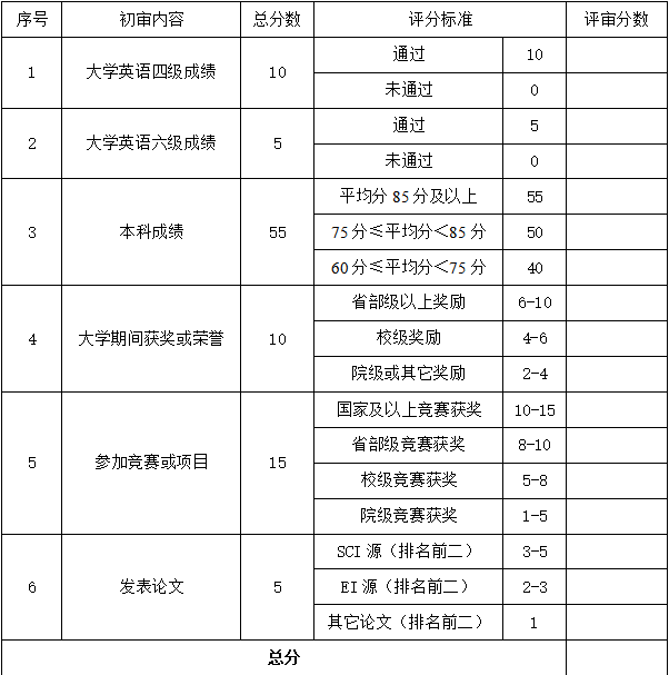 1. 学院按照综合成绩排名顺序,择优录取,初审成绩占综合成绩权重的50%,面试成绩占综合成绩权重的50%。即