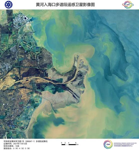 3、黄河入海口多谱段遥感卫星影像图